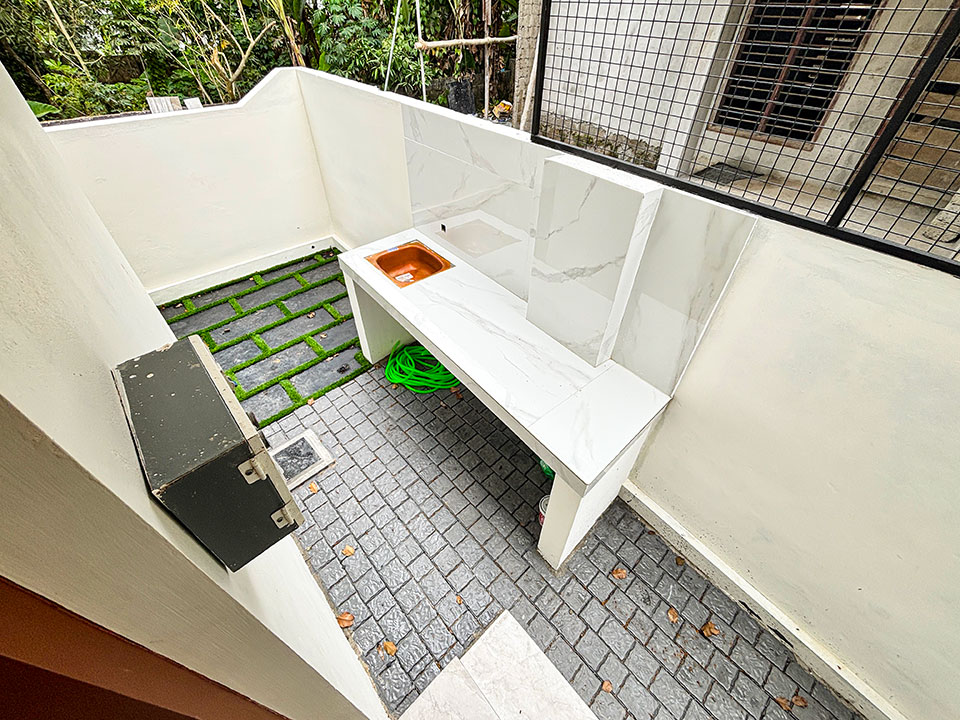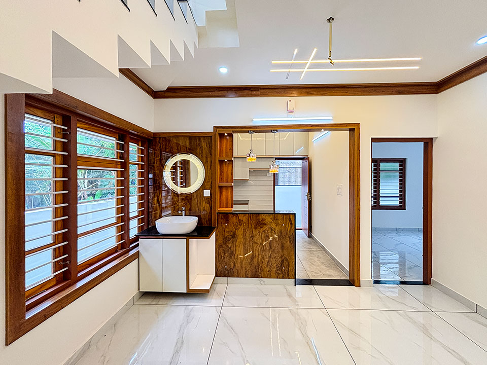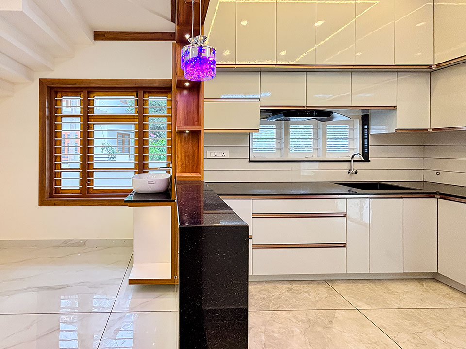 കൌണ്ടർ ടോപിനു മുകളിൽ വാഷ്ബേസിൻ സൗകര്യത്തോട് കൂടി ഒരു യൂട്ടിലിറ്റി സ്പേസ് കിച്ചനു വെളിയിൽ നൽകിയിട്ടുണ്ട്.