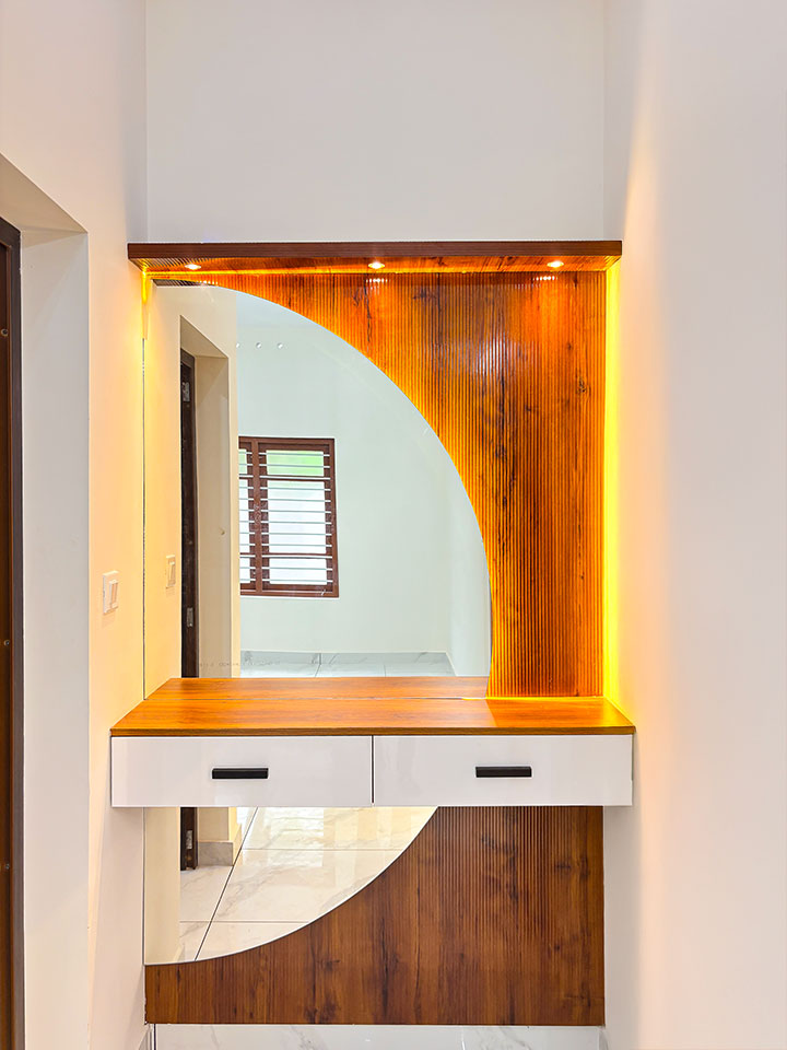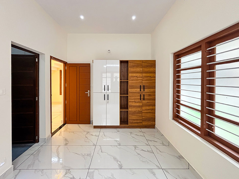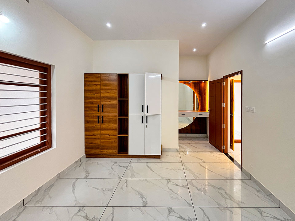 അറ്റാച്ചഡ് ബാത്റൂമുകളോട് കൂടിയ നാല് ബെഡ്റൂമുകൾ ആണ് ഈ വീടിനുള്ളത്. ധാരാളം സ്റ്റോറേജ് സൗകര്യത്തോടു കൂടിയ വാർഡ്രോബുകളും മനോഹരമായ മിറർ യൂണിറ്റുകളും ബെഡ്റൂമുകളിൽ ഒരുക്കിയിട്ടുണ്ട്