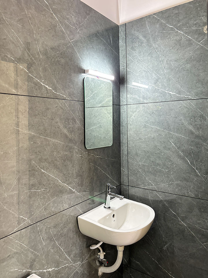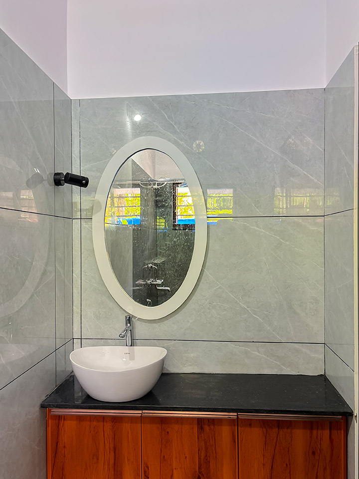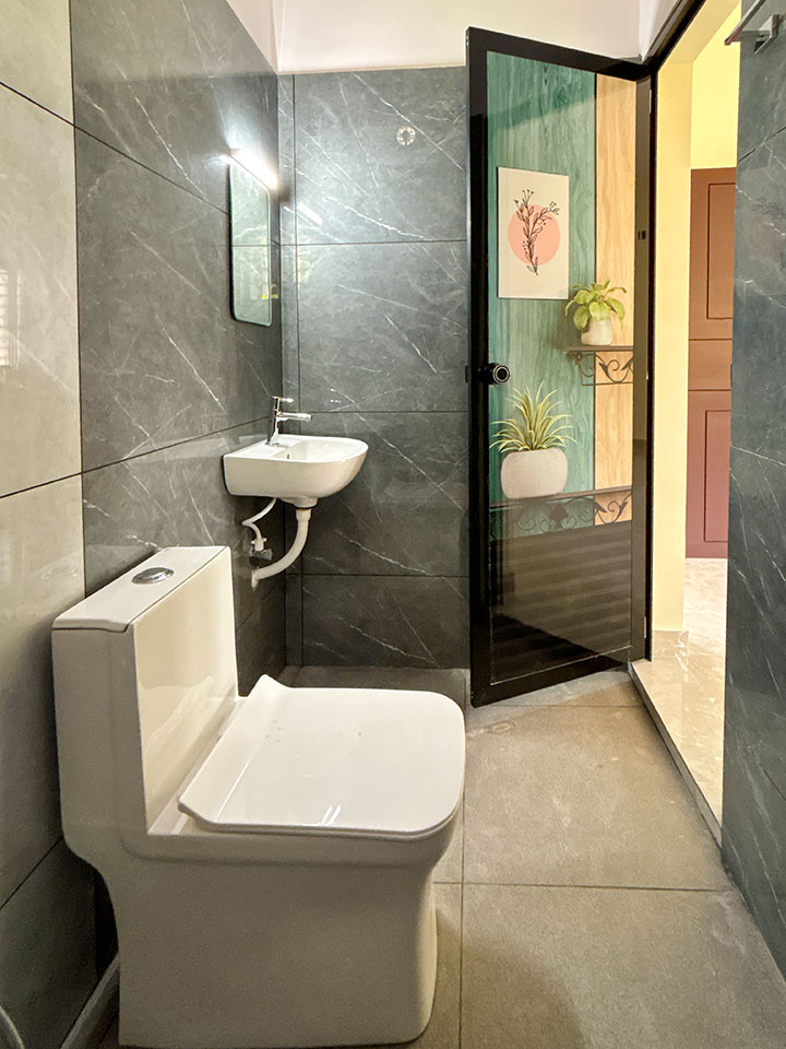 CERA, RAK എന്നീ ബ്രാൻഡുകളുടെ സാനിറ്ററി ഫിറ്റിങ്സാണ് ബാത്റൂമുകളിൽ കൊടുത്തിട്ടുള്ളത്.