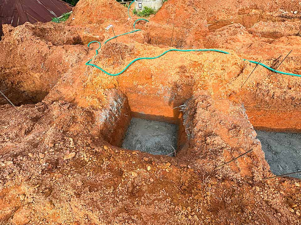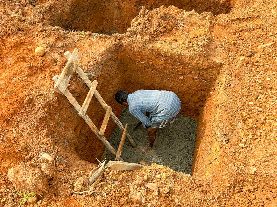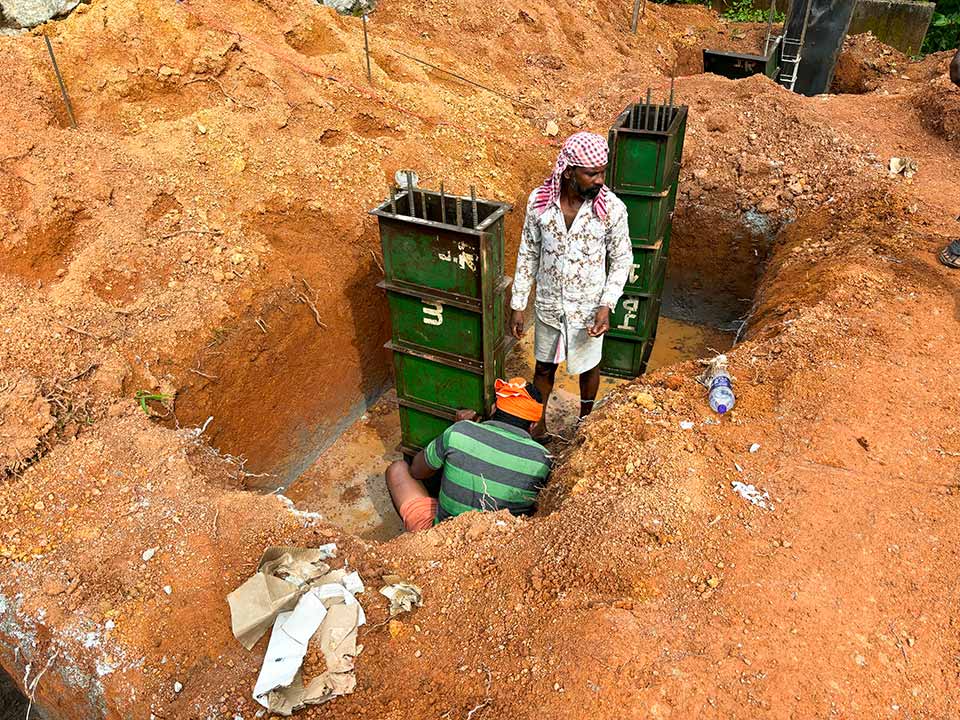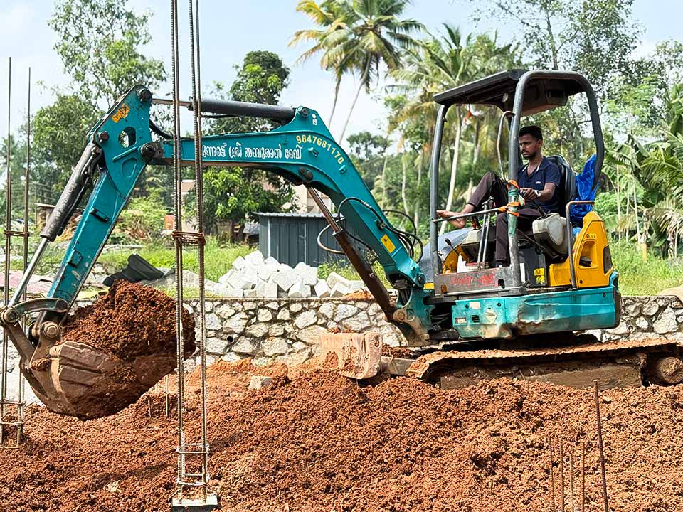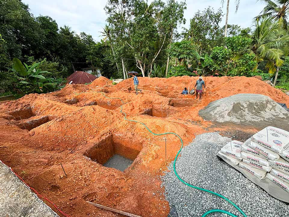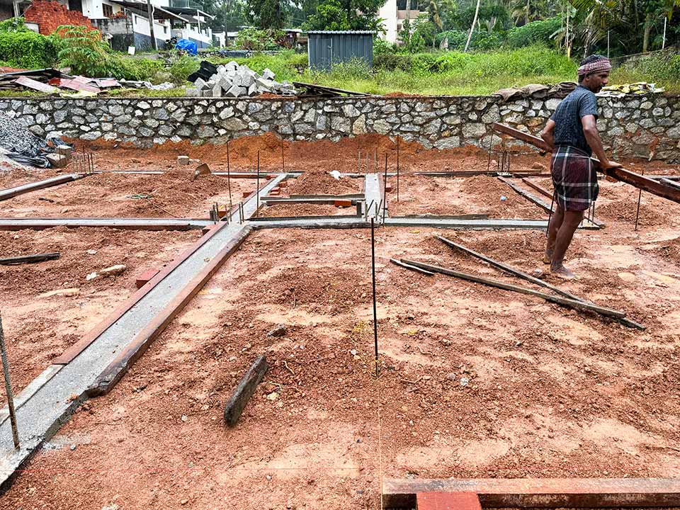 പ്ലാൻ പ്രകാരം സെറ്റ് ഔട്ട് ചെയ്ത് കൃത്യമായ ആഴത്തിലും വീതിയിലും മണ്ണ് കുഴിച്ചു മാറ്റി.