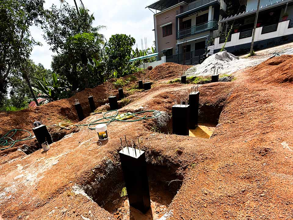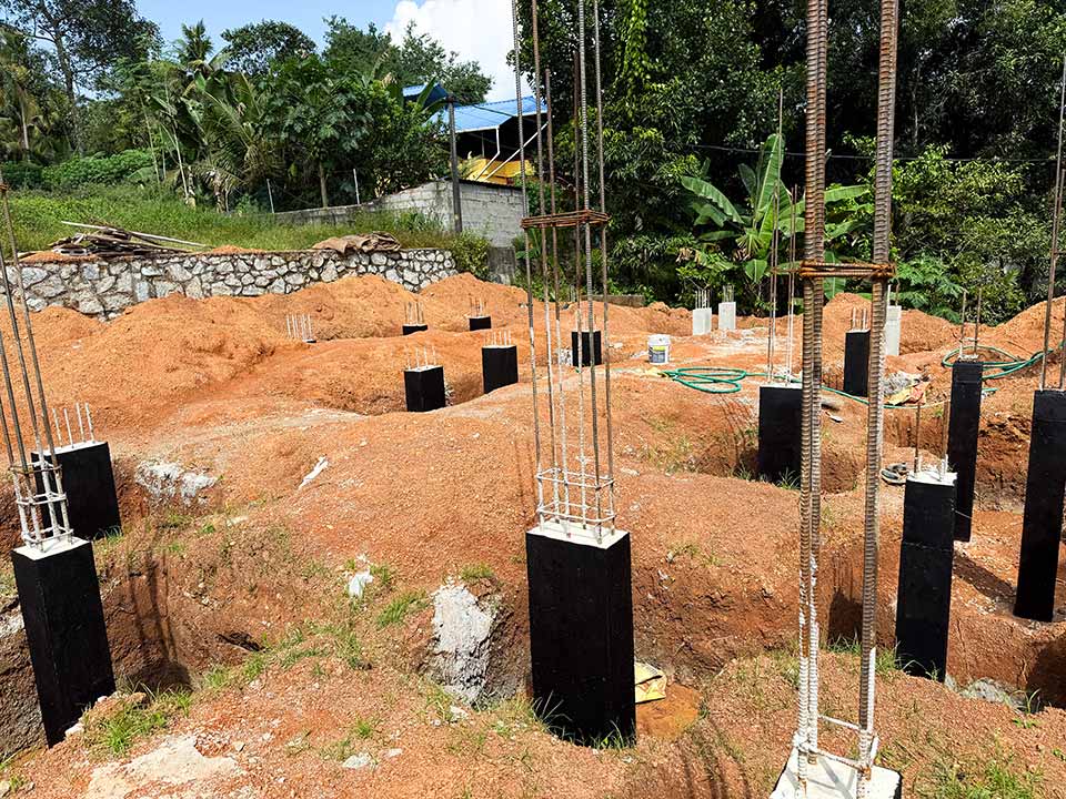 കോളം കോൺക്രീറ്റ് ചെയ്ത് 14 ദിവസത്തിനു ശേഷം ബിറ്റുമിൻ കോട്ടിങ് നൽകി വാട്ടർ പ്രൂഫിങ് നൽകി.