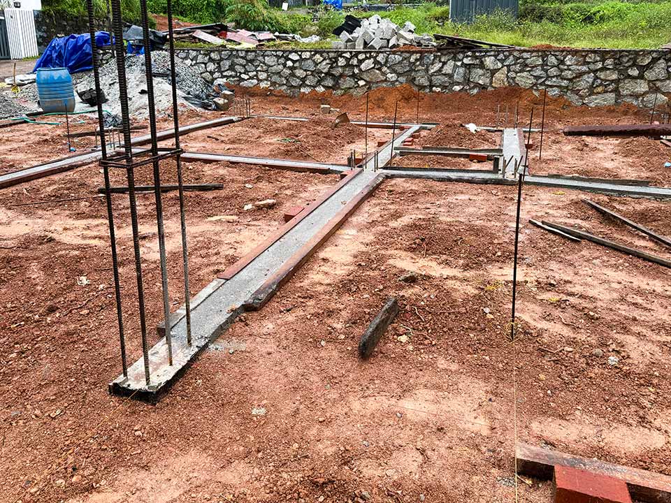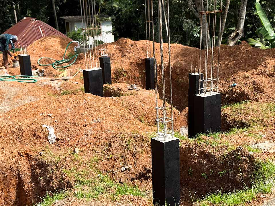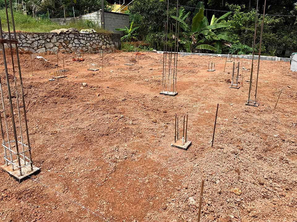 പോത്തൻകോടുള്ള ഐടി പ്രൊഫഷണലിനായൊരുക്കുന്ന വീടിനായി പൂർത്തിയാക്കിയ കോളം ഫൗണ്ടേഷൻ വർക്ക്. വീടിന്റെ പ്ലാനിങ് മുതലുള്ള ഓരോ ഘട്ടവും പൂർണമായും എൻജിനീയറുടെ മേൽനോട്ടത്തിലാണ് ചെയ്തു വരുന്നത്.