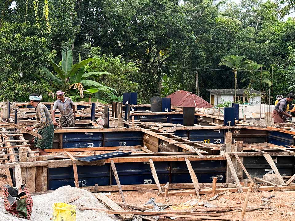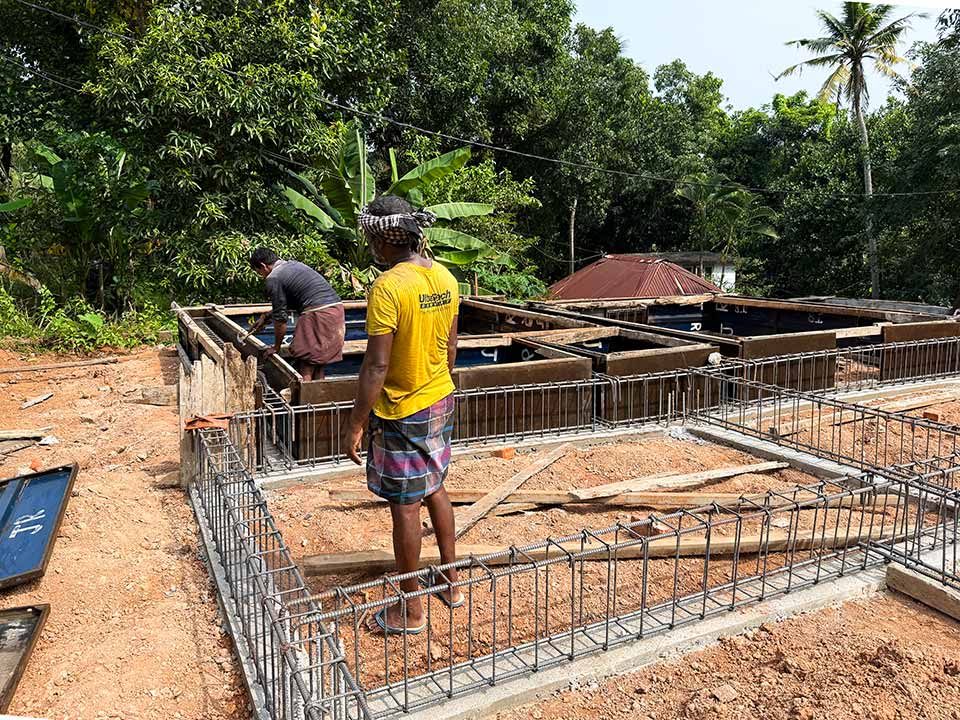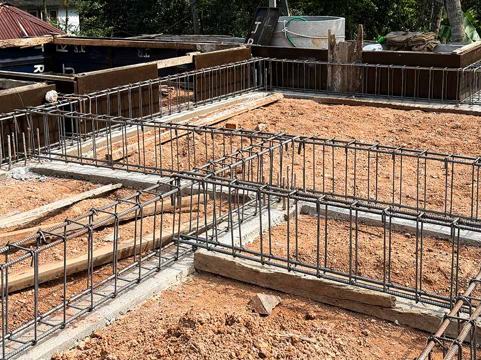 എൻജിനീയറുടെ നിർദ്ദേശപ്രകാരം PCC യ്ക്കു മുകളിലായി പ്ലിന്ത് ബീമിനുള്ള കമ്പി കെട്ടി ഷട്ടറിങ് നൽകി.